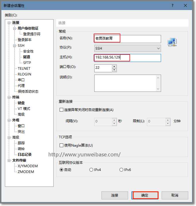 给远程连接的会话起一个名称,并在主机处输入获取的IP地址
